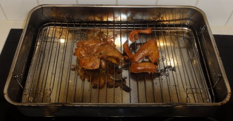 Roast the remainder 2/3 bones pieces in a hot oven (225C/435F) until golden, about half an hour. Deglaze the roasting pan with cold water.