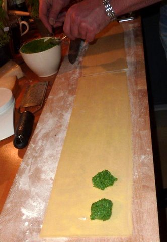 …and had a different matching wine with each type. We had a great evening! Home-made ravioli tastes so much better than the stuff from a factory you can buy at the supermarket. It will take a bit of practice, but if you already know how to make fresh pasta it’s not very hard if you follow my instructions for making home-made fresh pasta. With a group of 8 we had a full meal out of the 5 ravioli courses, using 8 eggs and 800 grams of Italian 00 flour. Below are the recipes for the stuffings. Unfortunately we did not take pictures of all the steps or all the finished dishes, but as you will see most preparations are very similar.