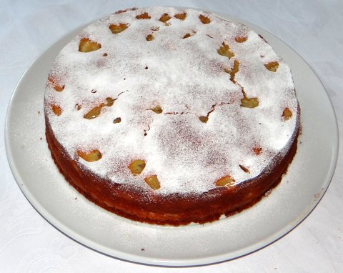 I tried this new idea for a cake on Sunday for a dinner party with my parents, and it was a big success! I had seen a recipe for a pear cake using ricotta instead of butter on GialloZafferano.it, and since pears and almonds are a good combination I thought I’d enrich it with almonds. It came out great: not too sweet, fresh and fruity, relatively light but not dry. And very easy to make if you don’t mind peeling some pears.