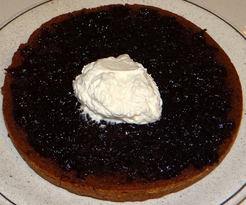 Whip the whipping cream with the confectioner’s sugar. Spread a layer of whipped cream on the cherries.