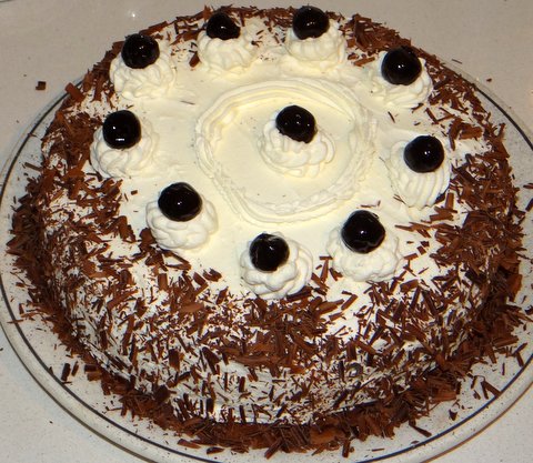 I’ve always liked Schwarzwälder Kirschtorte, but this is the first time I’ve made a Black Forest Cake from scratch. It turned out great, although my cake-decorating skills are not outstanding.