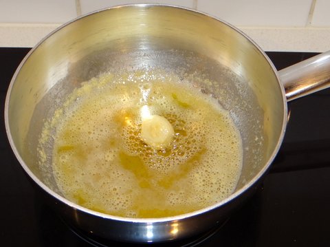 Melt the butter and very gently fry the garlic in it over low heat, the butter should not burn.