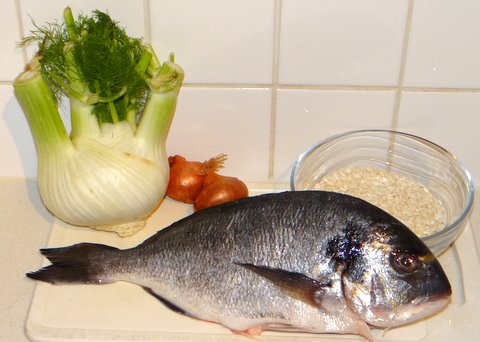 Risotto or pasta is not served as a side dish in Italy, but sometimes you do get fish fillets served on top of a nice plate of risotto (in many cases raw, or just slightly cooked because the raw fillets are on top of the hot risotto). I really like the combination of a risotto made with fennel and home-made fish stock and a sea bream or seabass fillet, fried on the skin side only for juicy tender fish with crispy skin. Risotto takes some time and patience to make, but the texture is better if you do the proper stirring for 15-20 minutes. As with any risotto, the taste depends to a great extent on the quality of the stock. If you have sous-vide equipment, you can make the fish even better by cooking it sous-vide and then crisping up the skin over high heat as described here. I am not specifying a wine pairing for this, as it is good with almost any dry white wine.