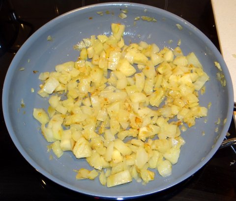 Chop the shallots. Cube the fennel. Heat 2 Tbsp extra virgin olive oil (or butter) in a wide thick-bottomed pan. Add the shallots and fennel and stir. Season with salt. Cover the pan and let the fennel and shallots braise for around 15 minutes until tender but firm to the bite and golden, stirring now and then. It is nice to let the fennel caramelize slightly for additional flavor.