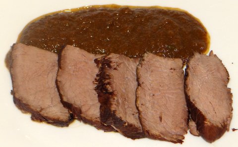 Cooked sous-videThe beef cooked sous-vide looks more juicy than the meat cooked conventionally, but the color is about the same. The beef cooked sous-vide is also more tender, but the beef cooked conventionally certainly isn’t bad either.