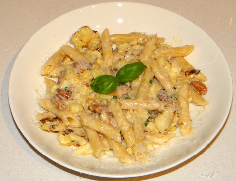 Summer still seems far away here in the Netherlands, so I felt like making this hearty pasta dish. It’s a simple dish with an original flavor, and very filling. This is not an original Italian dish; the combination of cauliflower and almonds is my own invention.