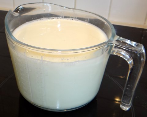 Heat up the milk until there are bubbles at the edge (I do this in the microwave, but you can also do it on the stove). Do not let the milk boil.