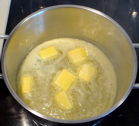 Back on the heat, mix butter and flour to obtain a roux.