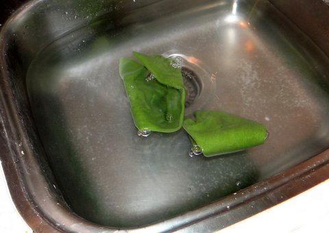 Since my stove is not next to my sink, I put the sheet in a colander first (with a deep plate underneath to catch the water) and then carry it to the sink filled with cold water.