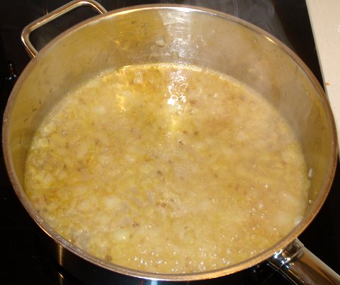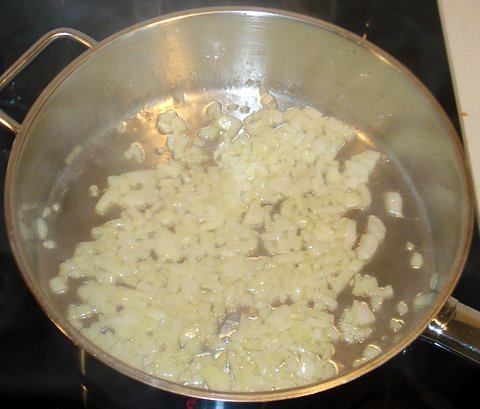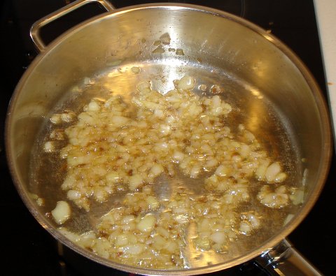 Meanwhile, sauté the onion in the olive oil over medium-high heat.