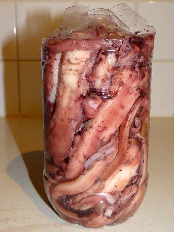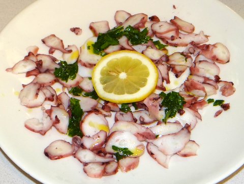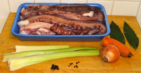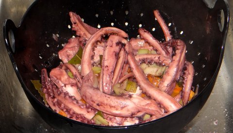 Drain the octopus and remove all the vegetables and spices.