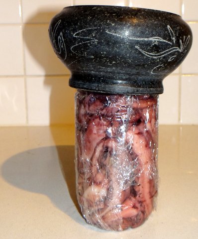 Wrap in plastic wrap and put something heavy on top. Refrigerate for 24 hours with some kitchen paper underneath to catch the liquid that will come out.