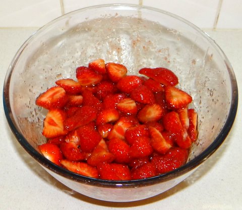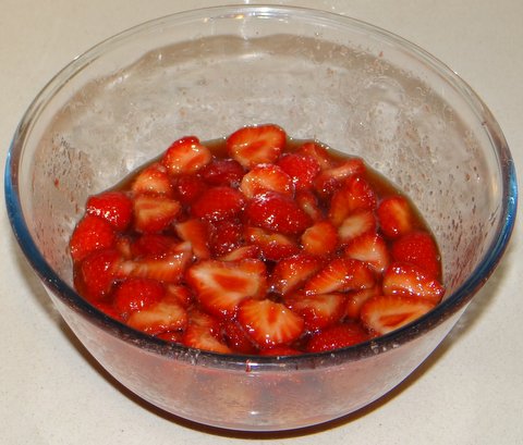 As I explained in my post about balsamic-honey macerated strawberries, the sugar will draw out the juices from the strawberries.