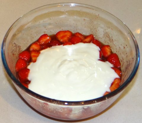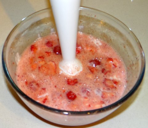 …and puree the strawberries together with the yogurt.