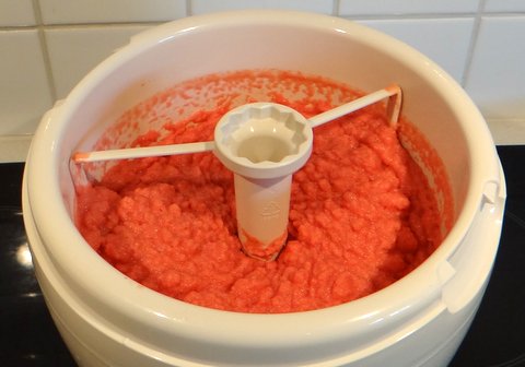 Churn this mixture in your icecream maker on the ‘slow’ setting (if it has a setting).