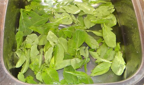 Meanwhile, cut the roots and the greens off the radishes and wash them. Use only the leaves from the greens and wash those as well, washing twice or until there is no sand left.