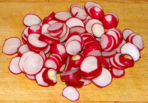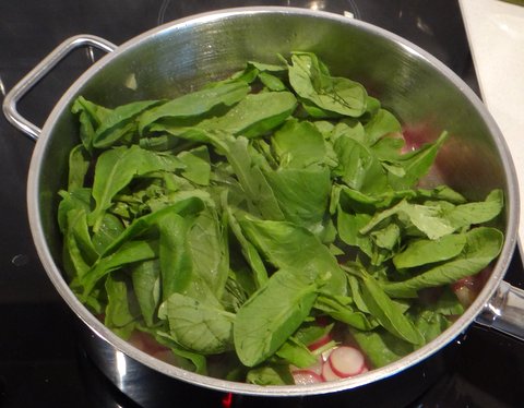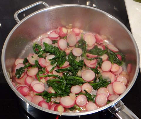 Radishes are great both cooked and raw, we eat their leaves all the time sautee’d with garlic and oil or in stews and soups! Fantastico!!