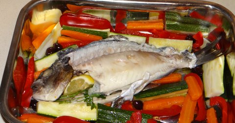 4 thoughts on “Sea bream with vegetables (Orata al forno)