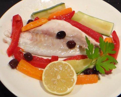 Serve with the vegetables and a slice of lemon. Drizzle with good extra virgin olive oil and sprinkle with freshly chopped flatleaf parsley.