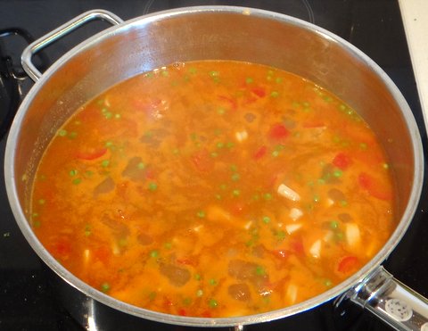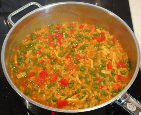 1. O M G – when I came to the photo of the paella in the saucepan, with the gorgeous, deep red of the sauce and the lovely green of the peas popping through – – I just wanted to take a huge spoonful !!