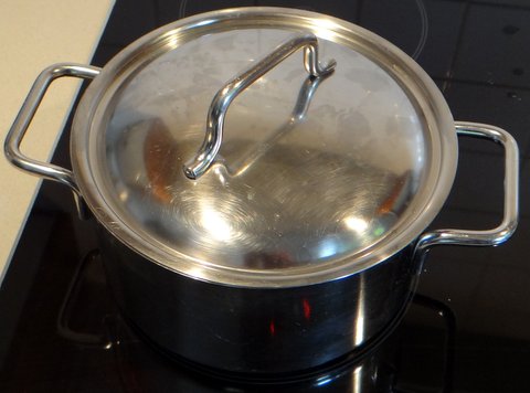 Cover and bring to a boil. Cook for 2 minutes over high heat, 5 minutes over medium heat and finally 15 minutes over very low heat. Turn off the heat and let it stand for another 10 minutes. Do not remove the lid during any of these steps.
