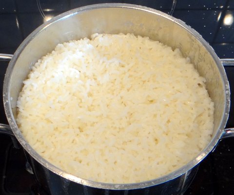 The rice is now ready. Up until this point, the method is the same as for Japanese rice in general.