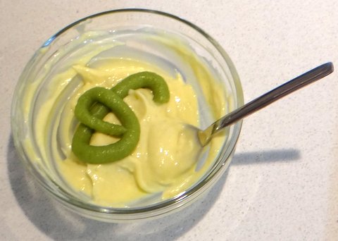 Take a very small bit of wasabi (or a bit more of the wasabi-mayonnaise) on your finger.