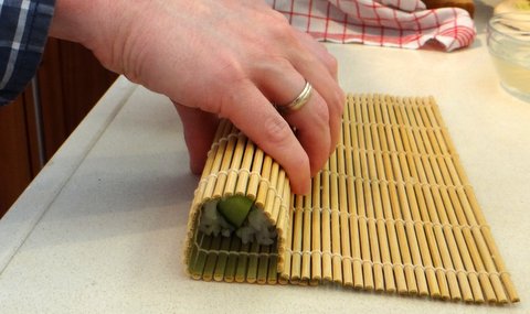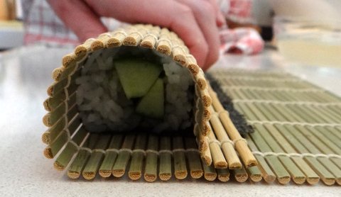 a bamboo mat for rolling sushi