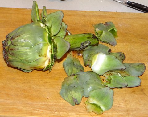 This cleaning method is for large tough artichokes. For small tender ones, you can eat more of them.