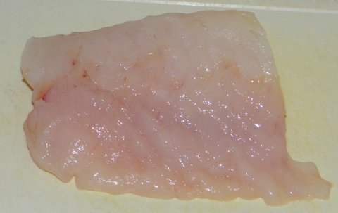 Here’s what I did. I picked up a nice piece of fresh monkfish fillet and cut it into 5 slices.