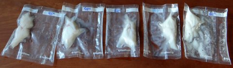 As you can see, there was hardly any loss of juices at 45C/113F, and quite a bit at 62C/144F. We tried all of them and found that 48C/118F was indeed the best for our taste (medium rare), and that we could see why some people would prefer 62C/144F. It is drier, but still juicy and seems more tender because it is flaky.