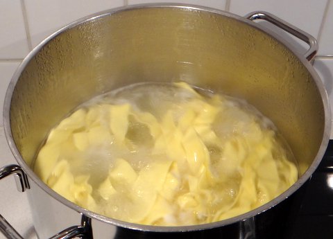 300 grams (2/3 pound) fresh home-made tagliatelle (made from 2 eggs and 200 grams semolina flour), or 150 grams (1/3 pound) dried tagliatelle