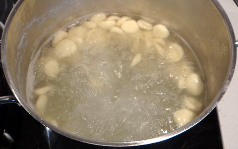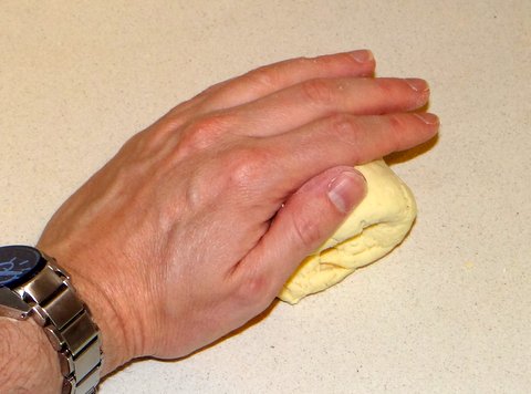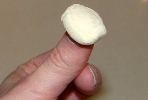 If, like me, you are not as dexterous as the dear old lady in the video, then just use your thumb to flatten a piece of dough (put it with a cut side up, first).