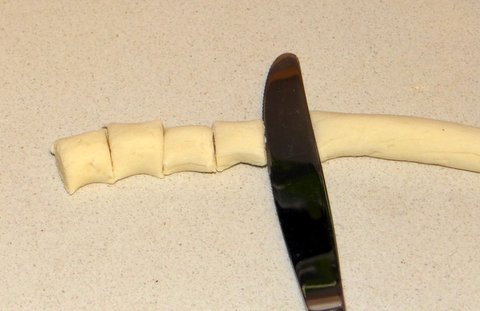 Cut the dough into pieces of about 1 cm (3/8 “).