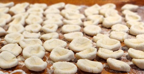 Now press down on the sides with your other hand to invert it, and one orecchietta is done.