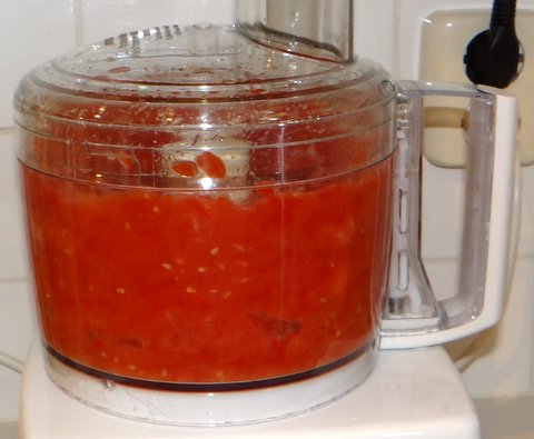 Process until tomatoes are pureed.