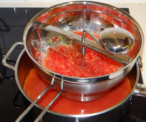 Use a food mill to sieve out the skin and seeds.