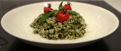 The difference is only pine nuts and garlic (and perhaps pecorino). I wasn’t decided on whether it would be basil risotto or pesto risotto and decided at the last minute to go with the simpler option first. I’ll try pesto next time.