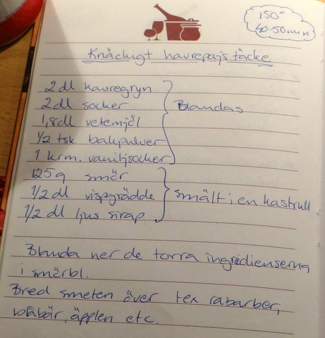 2 thoughts on “Tina’s Rhubarb Strawberry Crisp (Rabarber och Jurdgobbar med knäckigt havrepajs täcke)