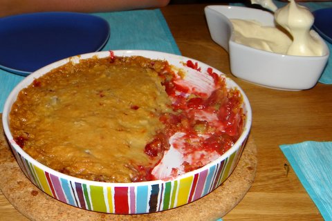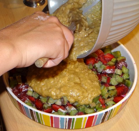 Tina’s Rhubarb Strawberry Crisp (Rabarber och Jurdgobbar med knäckigt havrepajs täcke)