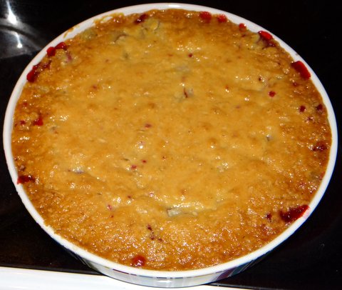 Serve with whipped cream (whip cream with sugar until thick). Can be either served warm (with a soft topping) or at room temperature (with a crispy topping).