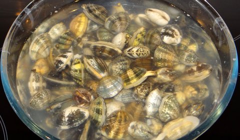 Let the vongole clean themselves by putting them in water as salty as the sea (3% by weight, i.e. 1 liter of water with 30 grams of salt, or 1 quart of water with 1 oz of salt) for an hour or so. Rinse them with fresh water to remove the salt.