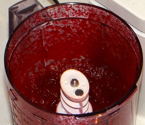 I then rubbed off the skins, cut the beets into quarters and put them in the blender.
