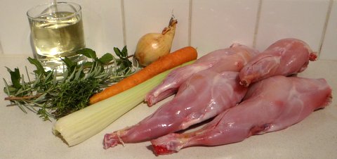 Cover, but not completely, and let simmer over very low heat until the rabbit is tender, stirring occasionally. In my case this took about 3 hours. Add a bit of water or stock if the sauce becomes too dry.