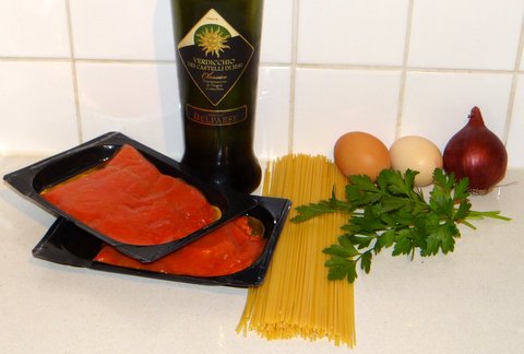 This is not an authentic dish, but my own invention. It is a fish version of the well-known spaghetti alla carbonara that uses smoked salmon and red onion instead of pancetta or guanciale. Just like real carbonara, the ‘sauce’ is raw egg that is only cooked slightly by the heat from the pasta. It only takes as long as it takes to cook the spaghetti. This dish is quick, easy, tasty, and healthy thanks to the omega-3 fatty acids in the salmon.