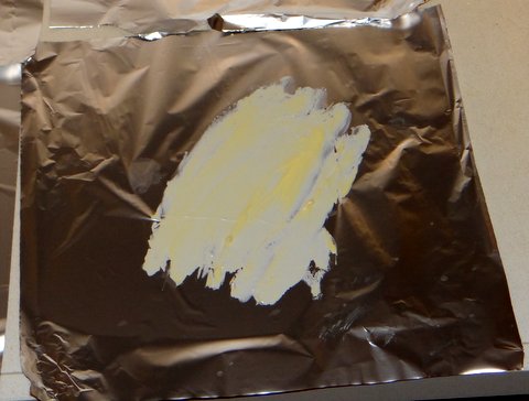 Take four 30 cm (12 inch) square sheets of aluminum foil. Butter the center of each sheet.