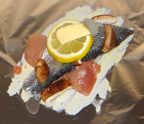 Fold into a packet and make sure it is tightly sealed. Cook for 17 minutes at 250C/475F.