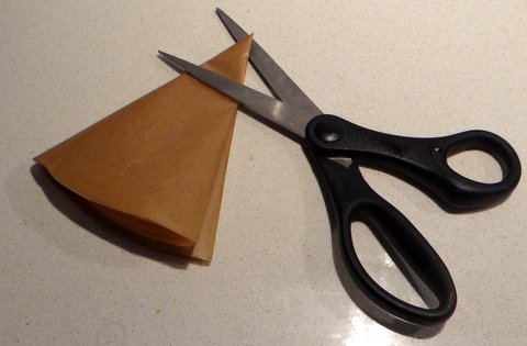 Cut a whole in the middle by folding it in 8ths and cutting of the tip (only 1 cm or 1/2 inch is plenty, I cut off slightly too much).
