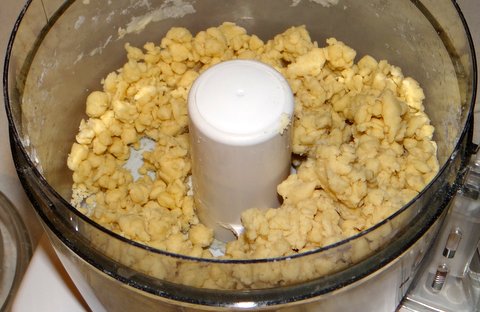 Pulse until the dough starts to come together. Add more ice water if needed (the exact amount depends on factors like the humidity of the flour and the air). Do not process more than necessary.