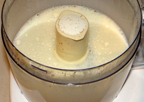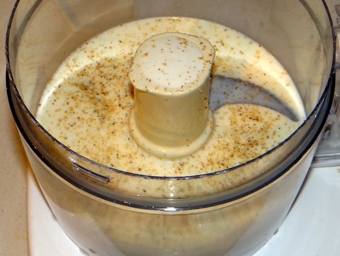 Make the batter by putting milk, heavy cream, salt, freshly ground white pepper, and freshly grated nutmeg into the blender or mixer.